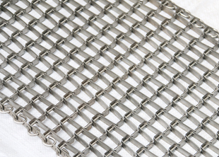 長城網帶:又稱馬蹄鏈由扁平金屬片經過模具的加工成型在串上圓金屬支軸所組成,網帶自重輕,網孔空隙大,網面平整,運行平穩,不會走偏。可作洗滌、干燥、冷 卻、熱處理的輸送線。